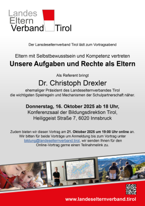 Dr. Drexler gibt aus seiner langjährigen Tätigkeit für Eltern wertvolle Einblicke in zahlreiche Themenbereiche: